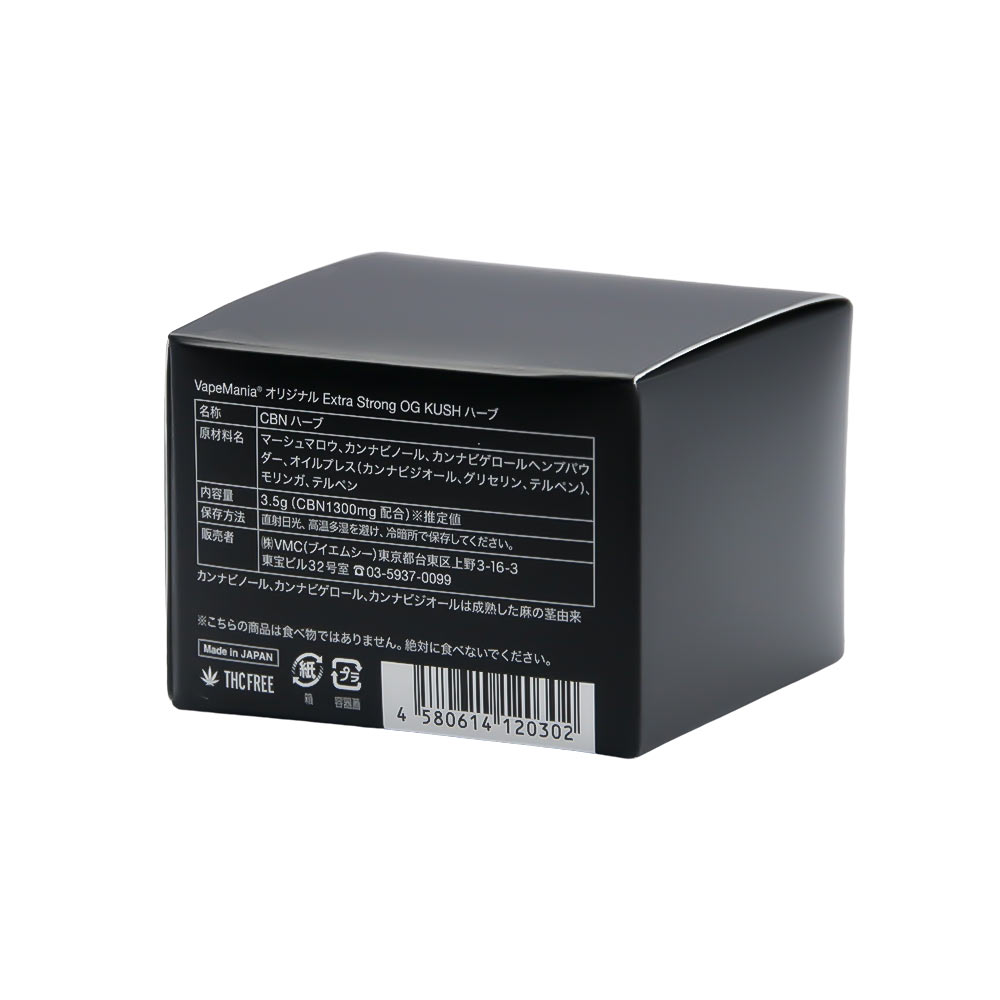 CBN1300mg + フルスペクトラムCBD + CBG茎パウダー + OG Kushテルペン + HEMPテルペンで出来た、エクストラストロングのCBNハーブが登場。その名も「CBNハーブ Extra Strong OG Kush」です。